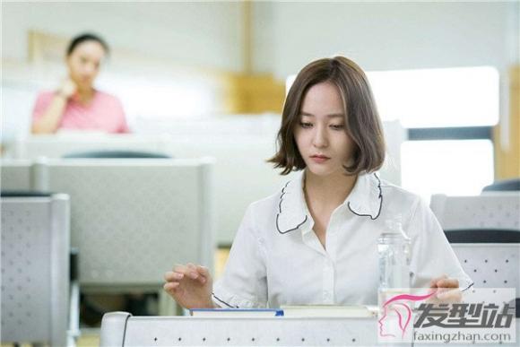 很好打理的一款短卷发,露额的设计完美的展现出郑秀晶精致小巧的脸型与五官,再加上巧妙的卷度呈现出性冷淡风的气质感。
