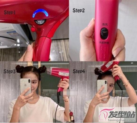 5.然后用风筒以最强的风力吹头约2分钟
