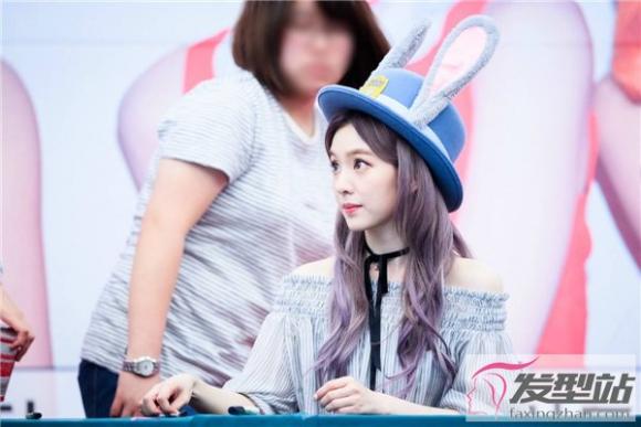 这款别出心裁的烫发,非常吸睛,渐变紫的染发凸显了女生的呆萌感,是很可爱显嫩的一款烫发发型,戴上帽子,少女感爆棚。