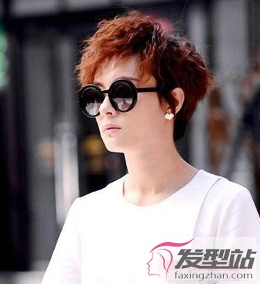 短发修剪得十分细碎,而且带有几分卷翘,显得动感十足,碎刘海正好修饰额头,很减龄。
