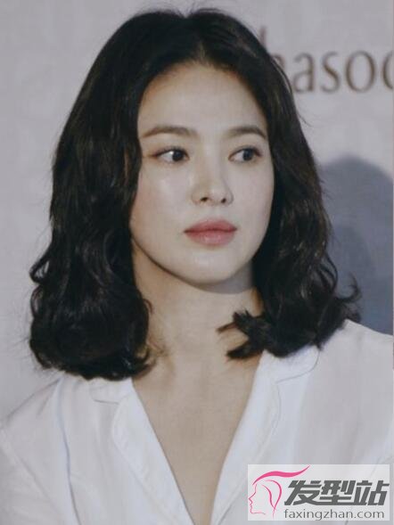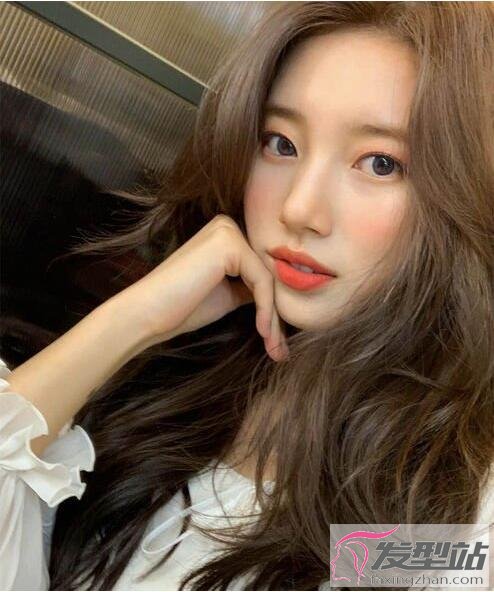 长发及胸的发型大多数散发女人味,微卷曲发造型更能增添浪漫气息。加上空气刘海的微卷长发造型,让脸颊看来更小,也可以达到瘦脸和逆龄的效果。