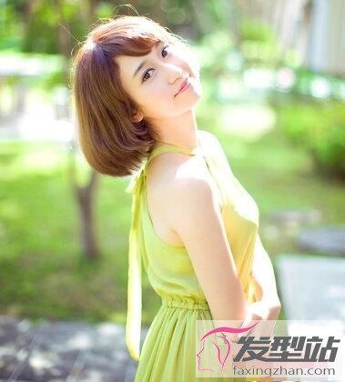 短发顶部是顺滑的造型,发尾则烫出微微的卷度,露额设计很适合额头不高的苹果脸女生,清新可人。