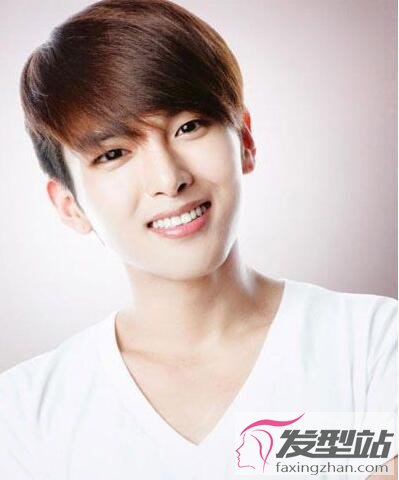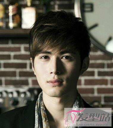短发采用了偏分梳理,正好能修饰男生有些高的额头,短发更是轻薄的修剪,很适合椭圆形脸男生,有着温文尔雅的气质。