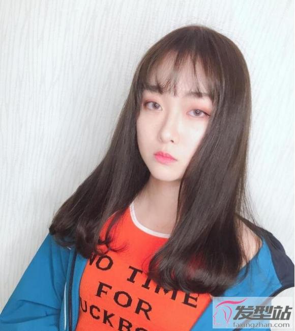 个性的女孩也可以尝试深色直发,在刘海及发尾处稍微以微卷线条呼应