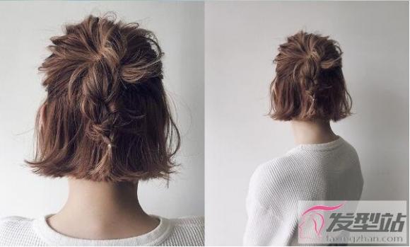 短鲍伯虽然底部的发长很短,但因为低层次的关系,其实顶部的发长已足够来绑头发、绑个可爱的半头了!若只是单纯绑个马尾或许稍嫌单调,这时可以用编发增加浪漫慵懒的发感!