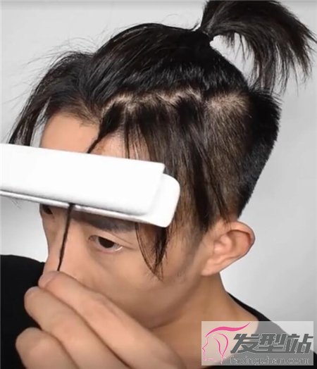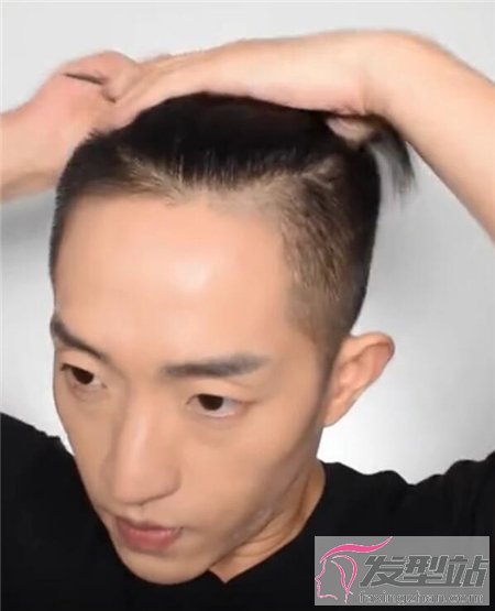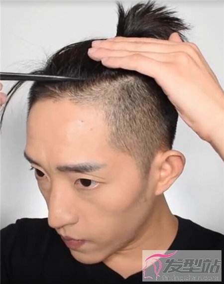 步骤5:细碎的发丝散落在额头两侧,增添了几分动感,而且非常修颜,很适合额头高的男生。