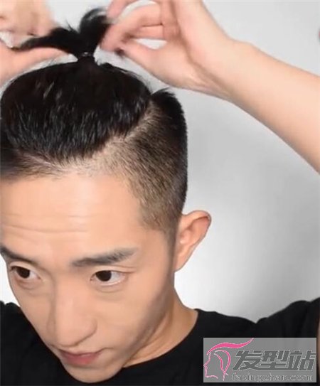 步骤2:侧面头发仍然保持短碎的造型,顶部头发则扎成马尾辫的样式。
