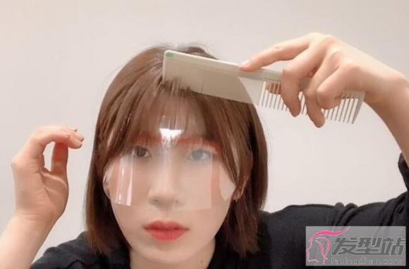 将刘海放下来后可以稍微先梳一下、让刘海更服贴在塑胶片上。
