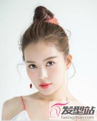 高扎的盘发很适合脸瘦的女生,头发梳理得较为整齐,几缕碎发丝点缀其间,露额设计呈现出清秀五官,特别减龄。