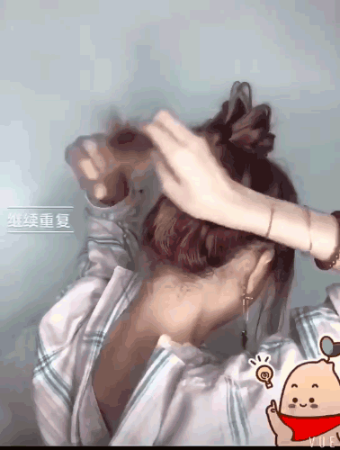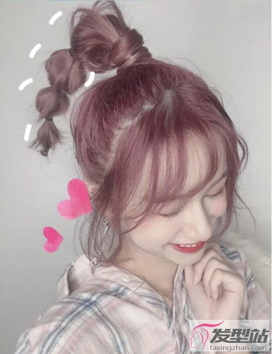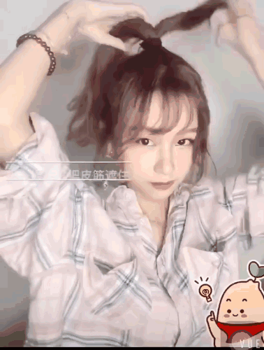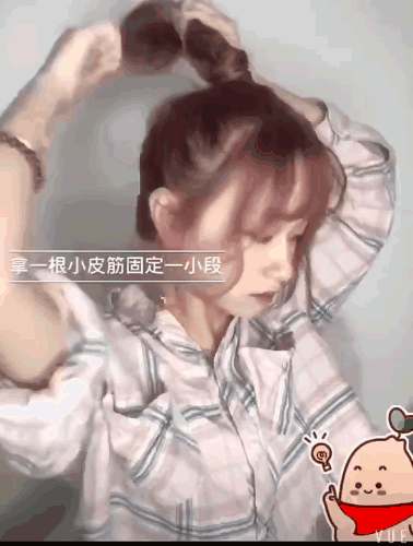 步骤二:用小橡皮筋,把头发扎成一节一节的,然后也扯得蓬松一点就好,这里大家可以灵活运用不同颜色的小橡皮筋,就会是今年流行的泫雅宣美风!