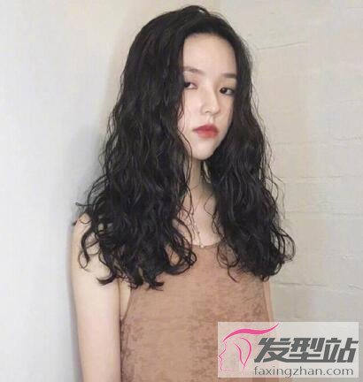 这款泡面卷发的发色虽然深沉暗淡,却很显白,细碎凌乱的设计提升了时尚感,使得女生圆润的脸颊瘦削了不少。