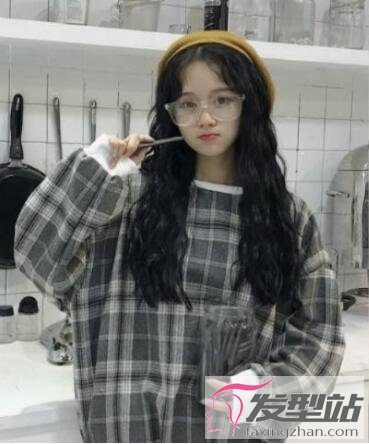 心形刘海轻薄又俏皮,增添了几分温柔感,头发经过泡面卷烫,灵动又修颜,使得女生更加青春靓丽。