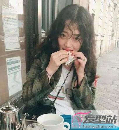 头发修剪出长短不一的层次感,经过泡面卷烫,显得灵动又洋气,女生的脸型又长又方,带有慵懒性感的韵味。