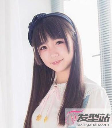 这款直发非常适合脸型圆润的女生尝试,几缕碎发散落在脸侧,戴上蝴蝶结发箍,显得甜美大方。