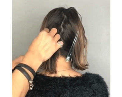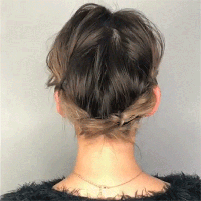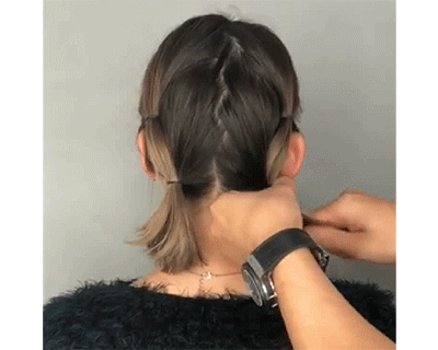 亮点来了!两边发尾交叉塞进另一边,用发夹固定。