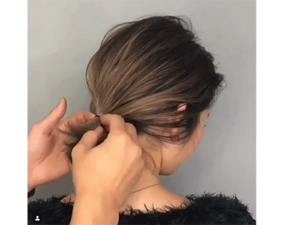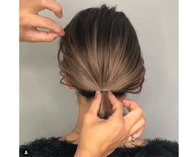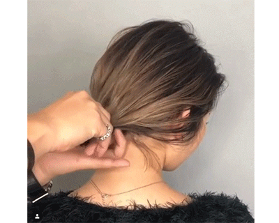 留出一只手指的空隙,把小马尾从上往下翻进去。