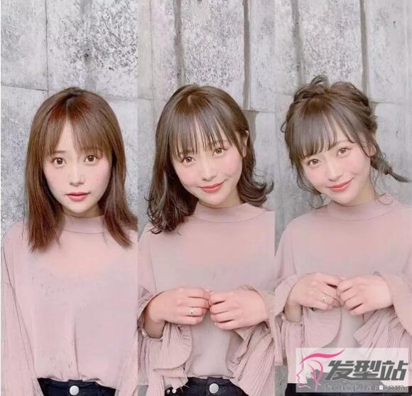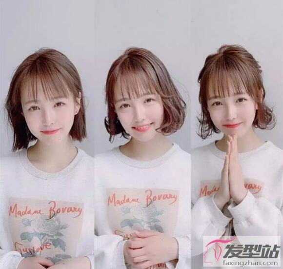 如果你不是肉肉脸也想可爱风,其实一款齐嘴短发就可以,发色不要太黑,发尾内扣,各种带须卷的刘海+蓬松扎发就能轻松减龄!
