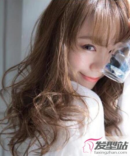 这款卷发同样是打造出空气感,发尾烫出大弧度的卷曲,时尚感呼之欲出,搭配轻薄的刘海,极为小清新。