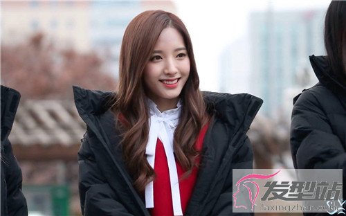 一半清纯、一半妩媚的一款中长卷发,有一种吾家有女初长成的青涩魅力,斜分的长刘海修颜效果极佳,再搭配螺旋卷的披肩长发,给人很养眼的感觉。