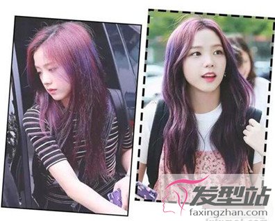 red velvet的成员irence的薰衣草紫色也成为话题,搭配长发自然的卷度,非常适合白皙皮肤的她。当然这个紫色中间加了专业的挑染,增加了头发质感。