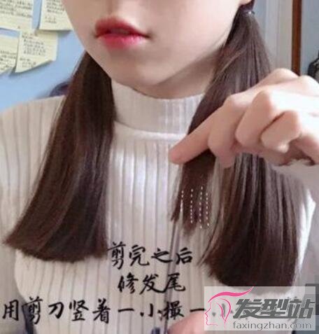 步骤5:修发尾时要注意长度,修完发尾后头发会比自己想象中更短一些。