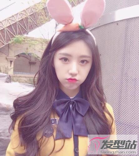 发质柔软细腻的少女,很适合尝试这款卷发,大弧度的卷曲洋气且减龄,斜梳的刘海使得额头不突兀,戴上发箍更是卡哇伊。