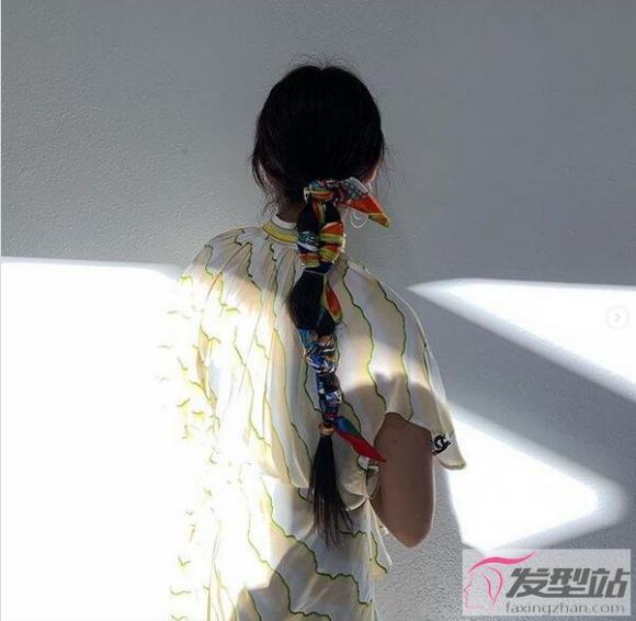 除了可以拿来穿搭之外,丝巾用来做发型也是很好的选择,用来当成头巾、发圈都可以华丽变身,用途广泛又简单,像这样绑在马尾的底部,就很漂亮了!