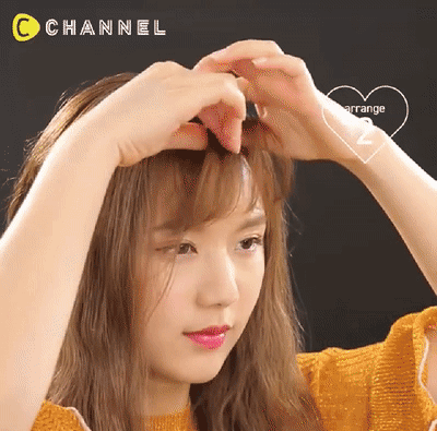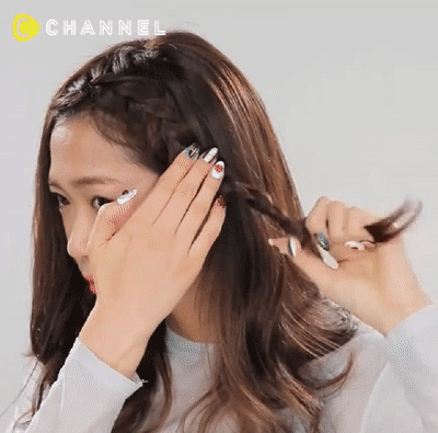 对于那些刘海过长,有点遮眼睛的长度,可以用编发+发夹的方法来打理。