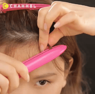 然后用一个小的直板夹里外里外类似蛋卷头的手法夹留出来的几撮碎发。