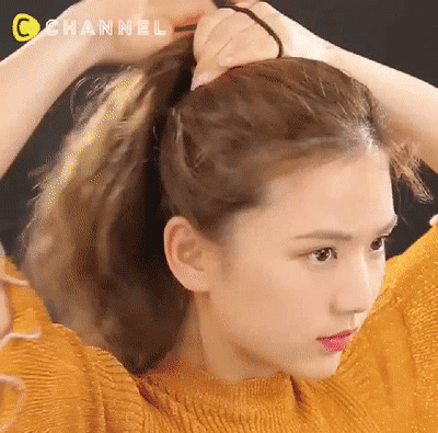 接着扎一个高高的马尾,记得把刘海也扎上去哦。