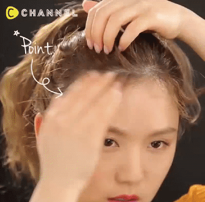第三步:把头发从鬓角处扯去后方,用发夹固定在后面头发的下方隐藏好。