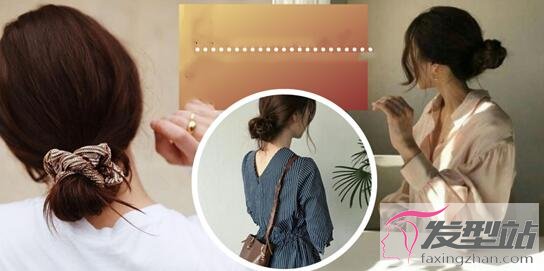 1、中短发韩式低丸子头