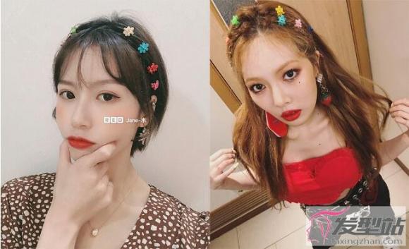 辣妹仔看过来,性感小野马泫雅的招牌发型,就连短发也可以轻松驾驭!七彩的爪型发夹,一支支排列环绕在头发上,不只让造型多了一点俏皮与甜美,作为短发的点缀也超有个性~ 在短发的夹法上,可以先将刘海分线分好,接着将头发抓出类似发箍的形状,而后再用不同颜色的小发夹做固定,不只不会突兀,发夹环绕形成的发饰造型还能随着心情与穿搭做不同色系的变化,很适合爱玩造型的年轻女孩做尝试呢!