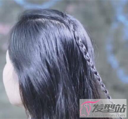 步骤2:将步骤1中取出的一小撮头发编织成经典的三股麻花辫,相信大家都会编麻花辫,方法不再赘述。