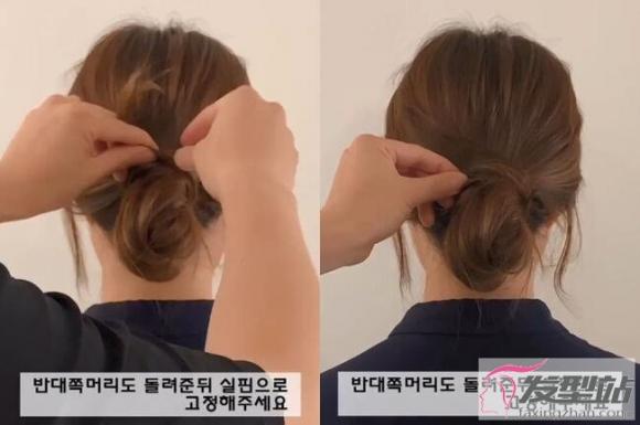 将剩余的发丝往上绕在发圈处、再用小黑夹固定即可。