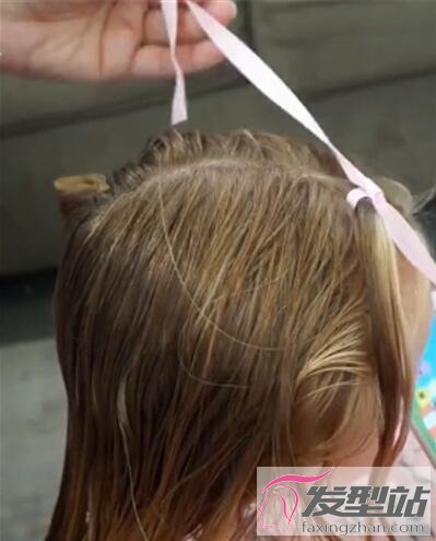 步骤5:最后将剩余的头发一起用丝带扎牢。