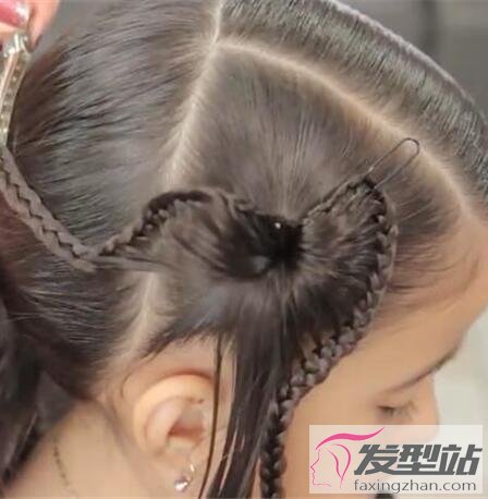 步骤8:将步骤7中编好的麻花辫环绕过蝴蝶结,并且用发夹固定。