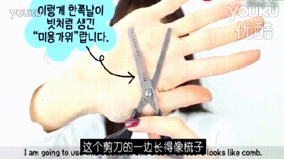 Step1 剪头发之前要先准备一把“半梳”剪刀,这种剪刀在你剪头发的时候可以有效固定,防止剪歪。
