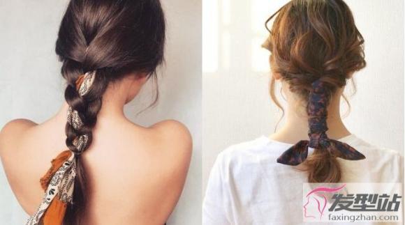 第一款就是超简单的三股辫X低马尾!这一款发型很适合搭配丝巾使用~只需要将丝巾折进其中一股辫子中(上图左),或是在绑完马尾辫子后将丝巾一圈圈缠绕在马尾外~这样就可以打造很有法式慵懒感的编发!