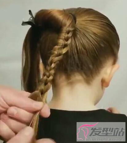步骤3:重复步骤2中的编发方法,一直编织到发尾,用橡皮筋将辫子绑牢。