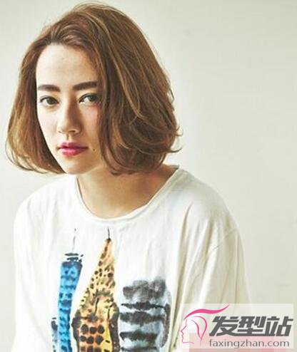 同样是一款适合额头宽女生的发型,短发烫出微卷的弧度,提升了时尚感,发丝顺着脸型滑落,简约的设计特别瘦脸。