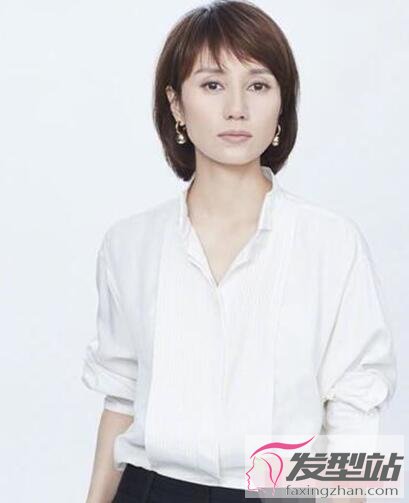 额头宽的女生可以尝试这款短发,头发是整齐的梳理,没有半点杂乱感,轻薄的刘海正好能修饰宽额头,穿上白色衬衫很知性。