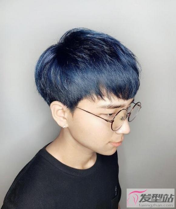 复古锅盖头的纹理剪裁搭上光泽感冰河蓝,让发束鲜明更有层次感,清新鲜肉在此登场