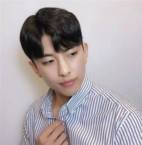 M字头发型,侧分的V字刘海,和分发线将男生的头发分成两部分,看起来像个M字的造型。