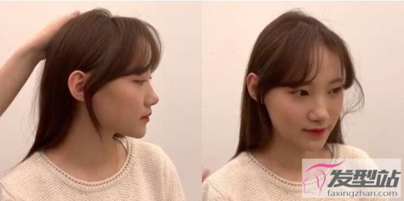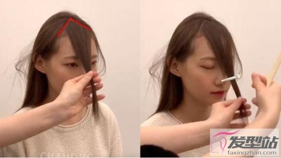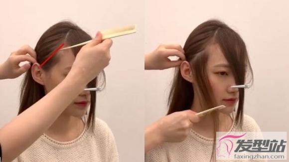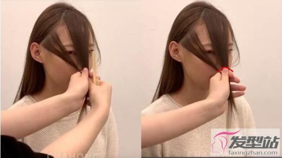 剪刘海STEP2:取适量侧脸碎发