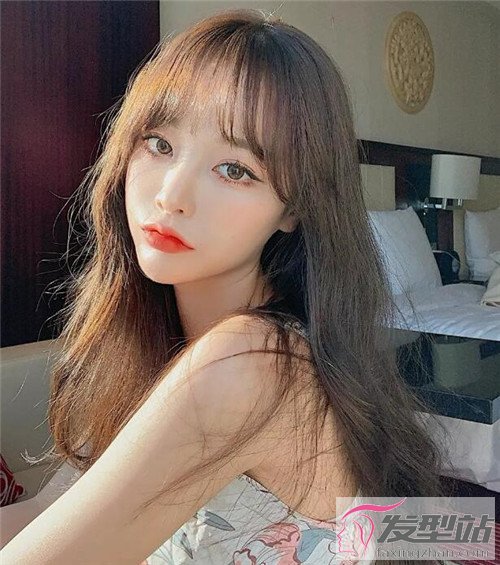 披肩的中长微卷发,温婉柔和。空气刘海的少女感搭配,造型的森系淑女感十足。