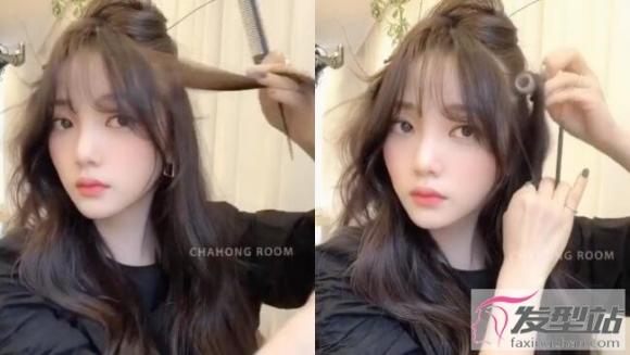 放下发卷后头发差不多已经蓬松、定型了,这时可趁着吹风机的热度还没有散去,将头发梳理开,调整一下发根形状~
