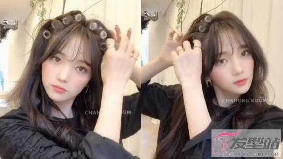 左右各上好8个发卷之后,用吹风机在发卷上方、前方持续吹整约10-15秒。
