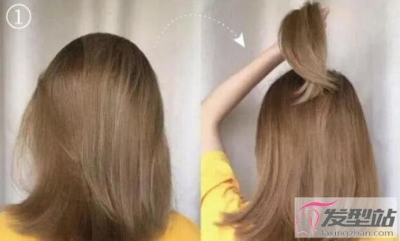 1.把头发梳顺,从头顶取一缕头发扎起来。