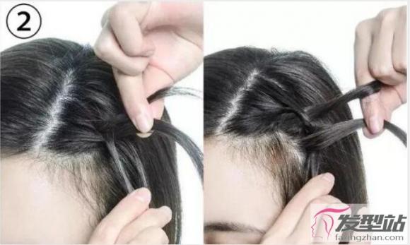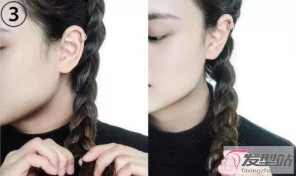 2.分成三股开始编辫,每次都要选取新的头发加入,使得辫子更有造型感。